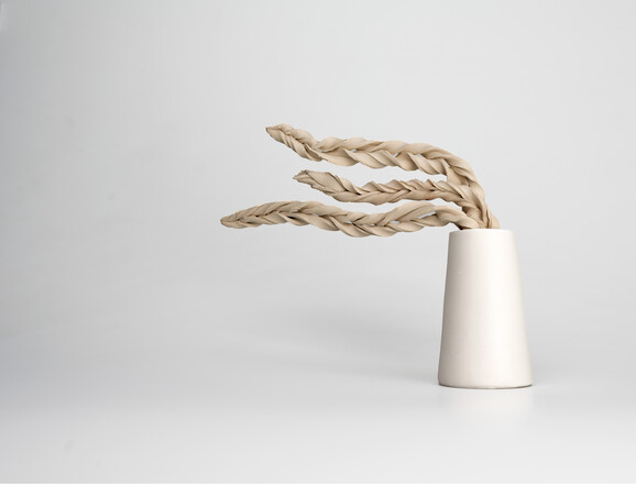 These ceramic pieces trace a journey - from a state of entrapment, to breaking free, and ultimately finding unity. Each work embodies a stage of transformation, reflecting resilience, strength, and the collective hope of those fighting for gender equality and freedom. The cut plaits serve as both a symbol and a memory of the women who protested fearlessly for their rights.