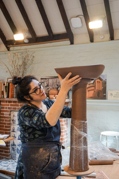 My practice as a ceramicist combines both hand-building and throwing techniques, and I often move between them intuitively as I work. One of the things I enjoy most about working with clay is the process of problem-solving - finding practical and creative ways to bring my ideas to life.