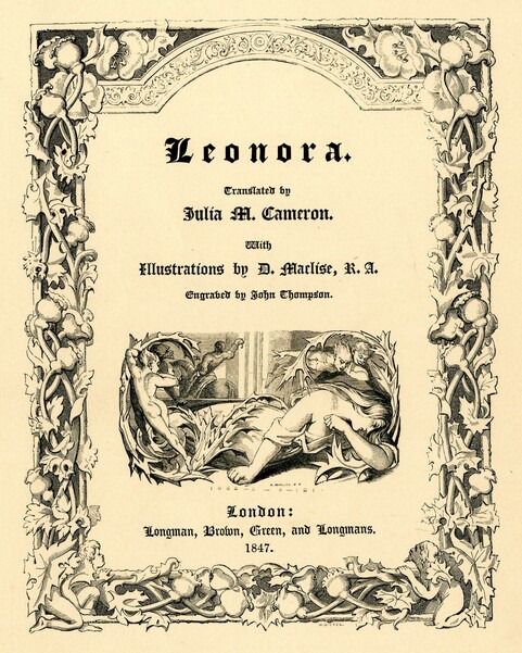 Julia Margaret Cameron (1815-1879), Leonora / translated by Julia M. Cameron; with illustrations by D. Maclise, R.A., engraved by John Thompson, 1847. British Museum.