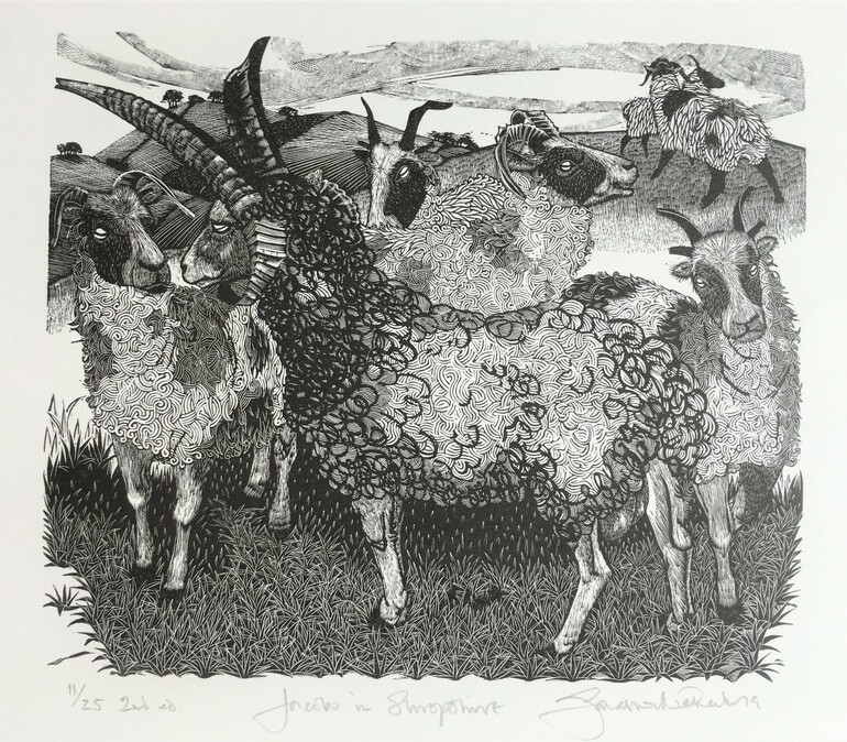 Growing up in the Berkshire countryside, Sarah’s early childhood was spent outdoors, stomping in fields and following the seasons. When World War II seemed imminent, she sailed to Canada with her mother and brother, then travelling on by train to USA. Her father joined later, working on secret government missions. Back in England after the War, the family lived in a farm near Newbury, and Sarah (like Gertrude Hermes before her) considered a career in farming. Her main interests were riding her horse and drawing animals. Having been sent off to France to learn French and acquire some culture, she returned – age 17 – and interviewed for a place at the Slade School of Art. It was recommended that she might fit in better at the Central School of Art and Design, to focus on Illustration or Graphic Design. She was put into a Zoo Drawing class, taught by Gertrude Hermes, who then introduced her to wood engraving. Sarah was captivated. She went on to complete the school’s new Diploma in Wood Engraving.