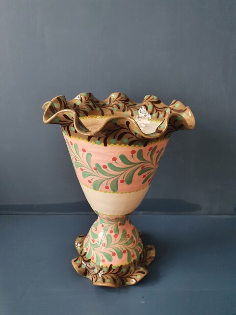 Katrin Moye, Pink and coffee green garland frilled pedestal vase