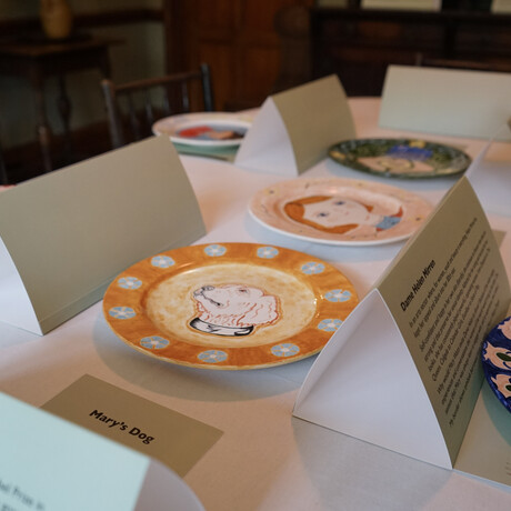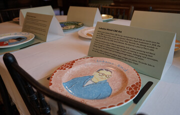 These imagined guests are shown by the artists through decorated ceramic plates. Creating dinner spaces and laying the plates on the table in Limnerslease where these guests would sit.