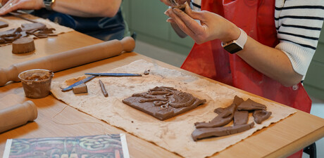 What we offerSessions focus on participants gaining confidence in visual literacy skills through both viewing and analysing art, which can then translate into the classroom. If at the gallery, these techniques would be addressed on interactive tours and include suggestions of props and activities to make meaning from visual information.Following this, a practical, studio-based activity supports participants in developing confidence in creating and making with materials. This is achieved through a creative workshop led by one of our Freelance Artist Educators, who will share knowledge of delivery techniques for back in the classroom with children. We offer a range of specialisms including printmaking, pottery and sculpture. In addition, experimental sketching in the gallery is a fantastic way for the group to encounter different approaches to sketching and observational drawing to build confidence and resilience.