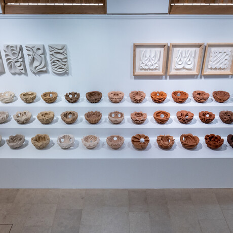 The exhibition on show in the Historic Galleries will explore Cassell's evolving practice over the past 25 years and will include a piece specially commissioned by the Watts Gallery, made with local Compton clay. The artwork takes inspiration from the work of both G F and Mary Watts and is the first acquisition by a living artist to join the Watts Gallery Trust collection. Halima Cassell MBE (b.1975-) was born in Kashmir, Pakistan, grew up in Lancashire and now lives in Shropshire. A fusion of cultural environments has shaped her identity and underpins her practice. Her work explores what connects us rather than what divides us, finding expression for this in complex surface patterns created through deep carving into unglazed ceramic, marble, wood and more.